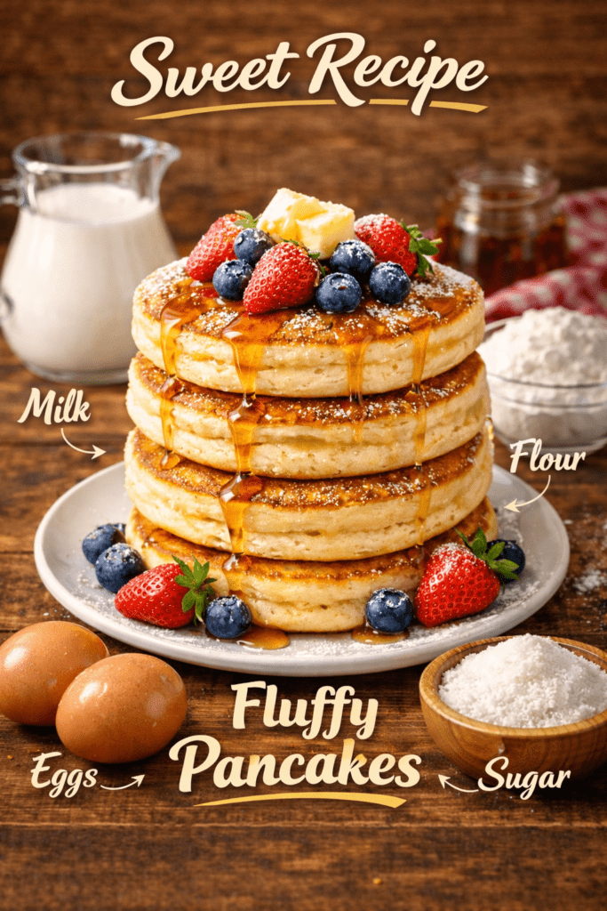 Make the best fluffy pancakes with this easy homemade recipe. Soft, thick, and ready in just 15 minutes – perfect
