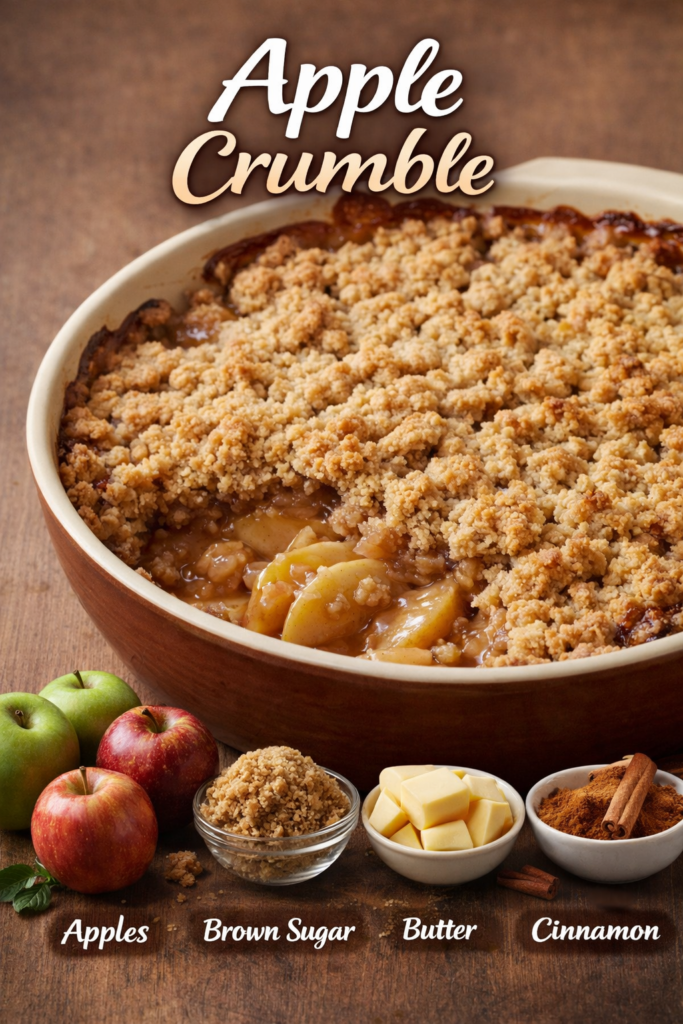 Classic apple crumble with brown sugar and cinnamon. Warm, cozy, and perfectly golden with a crisp topping and tender apples.