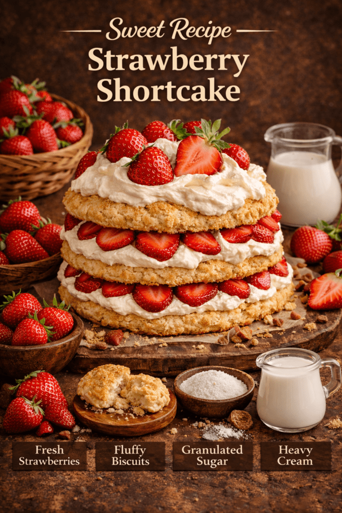 Easy homemade strawberry shortcake made with fluffy biscuits, fresh strawberries, and whipped cream. A classic American dessert perfect for any