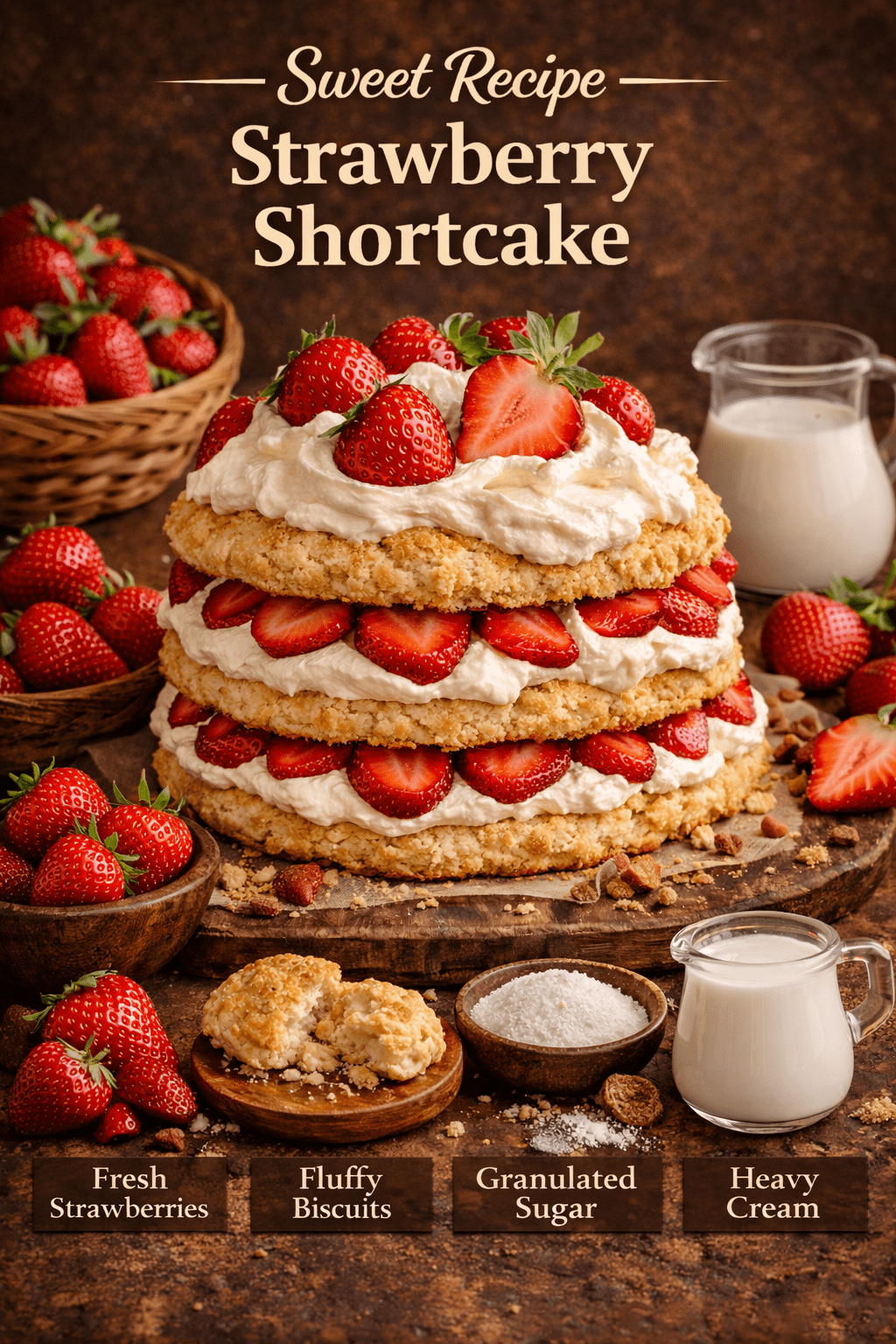 Easy Homemade Strawberry Shortcake Recipe with Fresh Strawberries & Whipped Cream